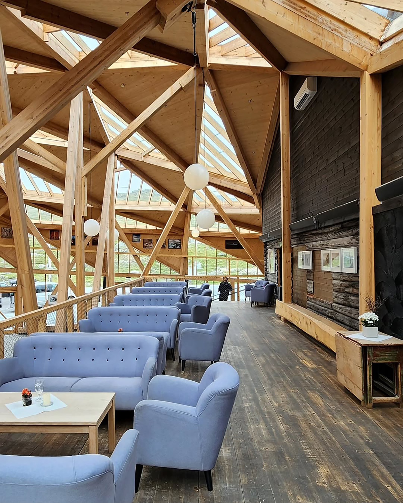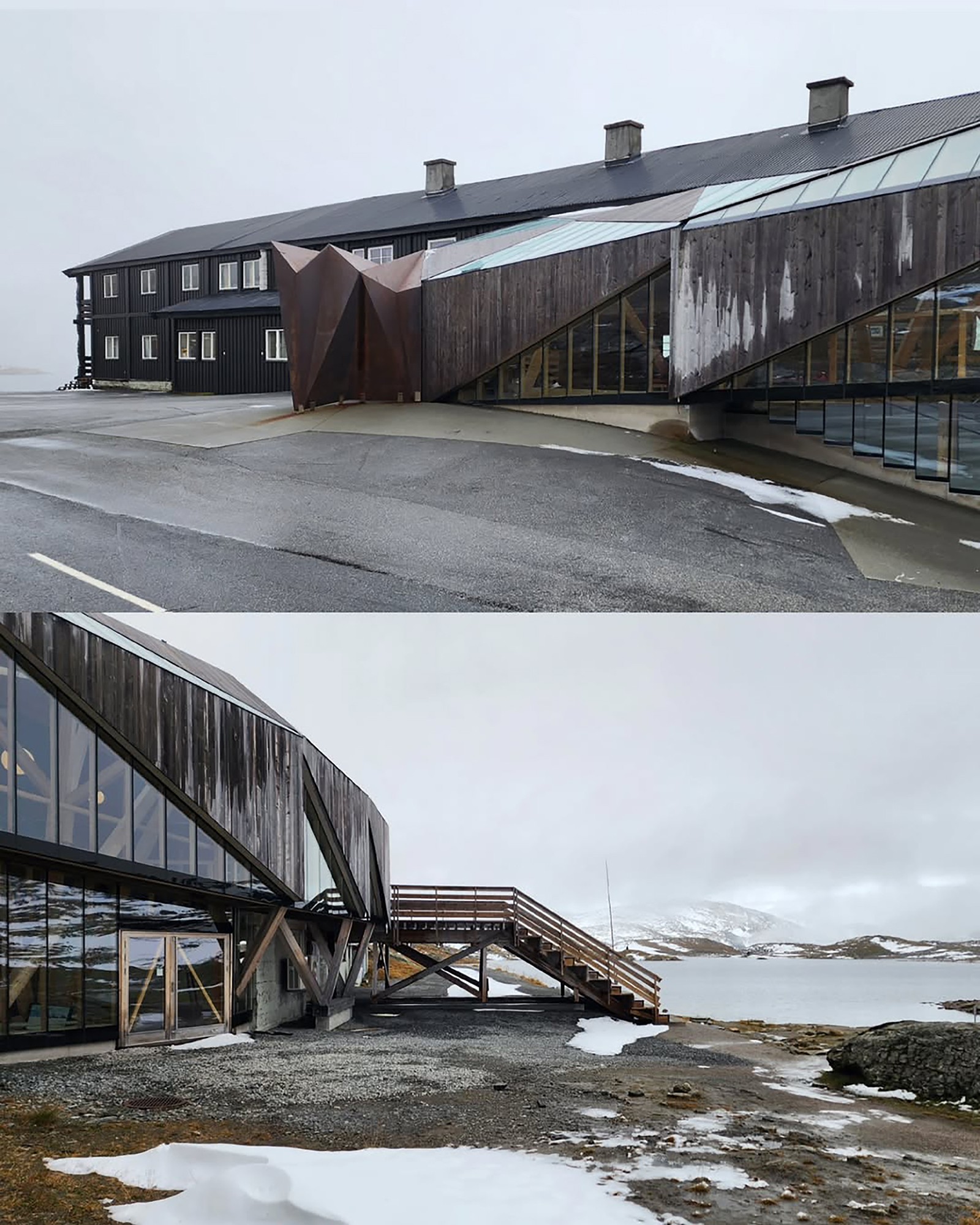 바위와 진흙이라는 서로 다른 지형 위에 놓였던 두 산장은 시간이 흐르며 노후화되었고, 구조적·기능적 단절이 가져온 불편함과 운영상의 비효율로 인해 새로운 건축적 개입이 요구되었다. 이에 노르웨이 건축가 듀오 Jensen & Skodvin은 기존 산장을 보존하면서도, 두 건물 사이를 하나의 흐름으로 통합하는 방안을 제안했다.