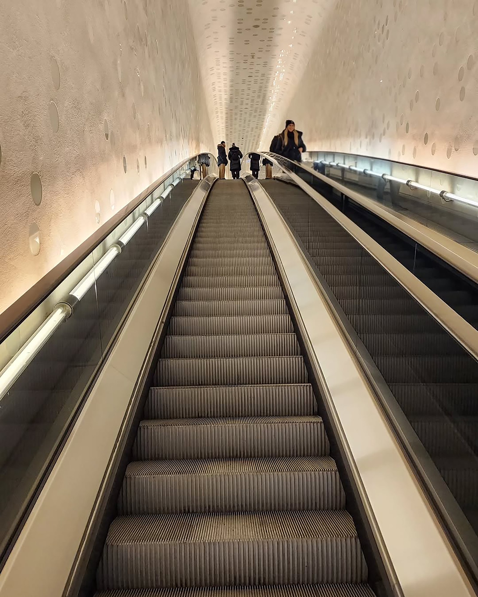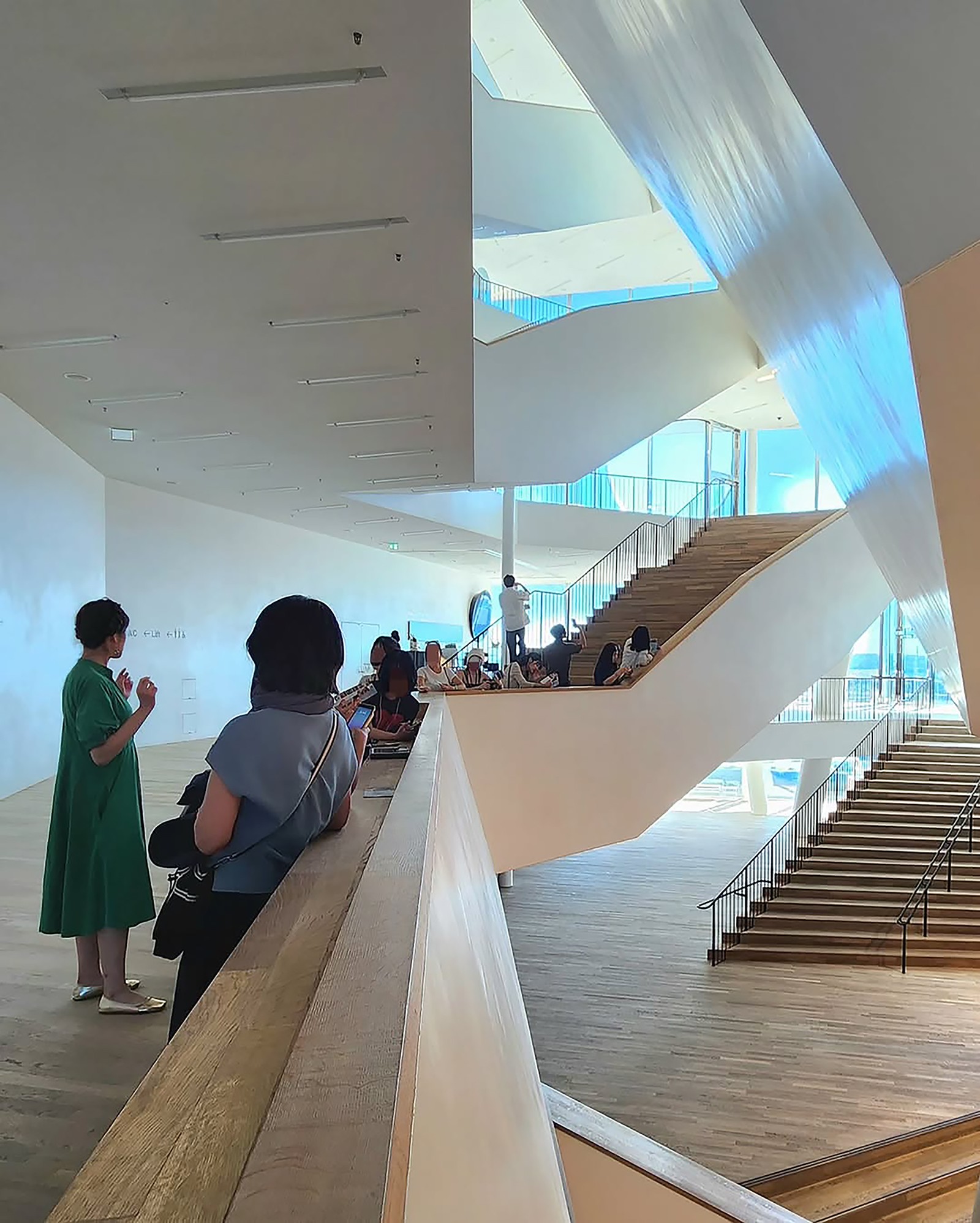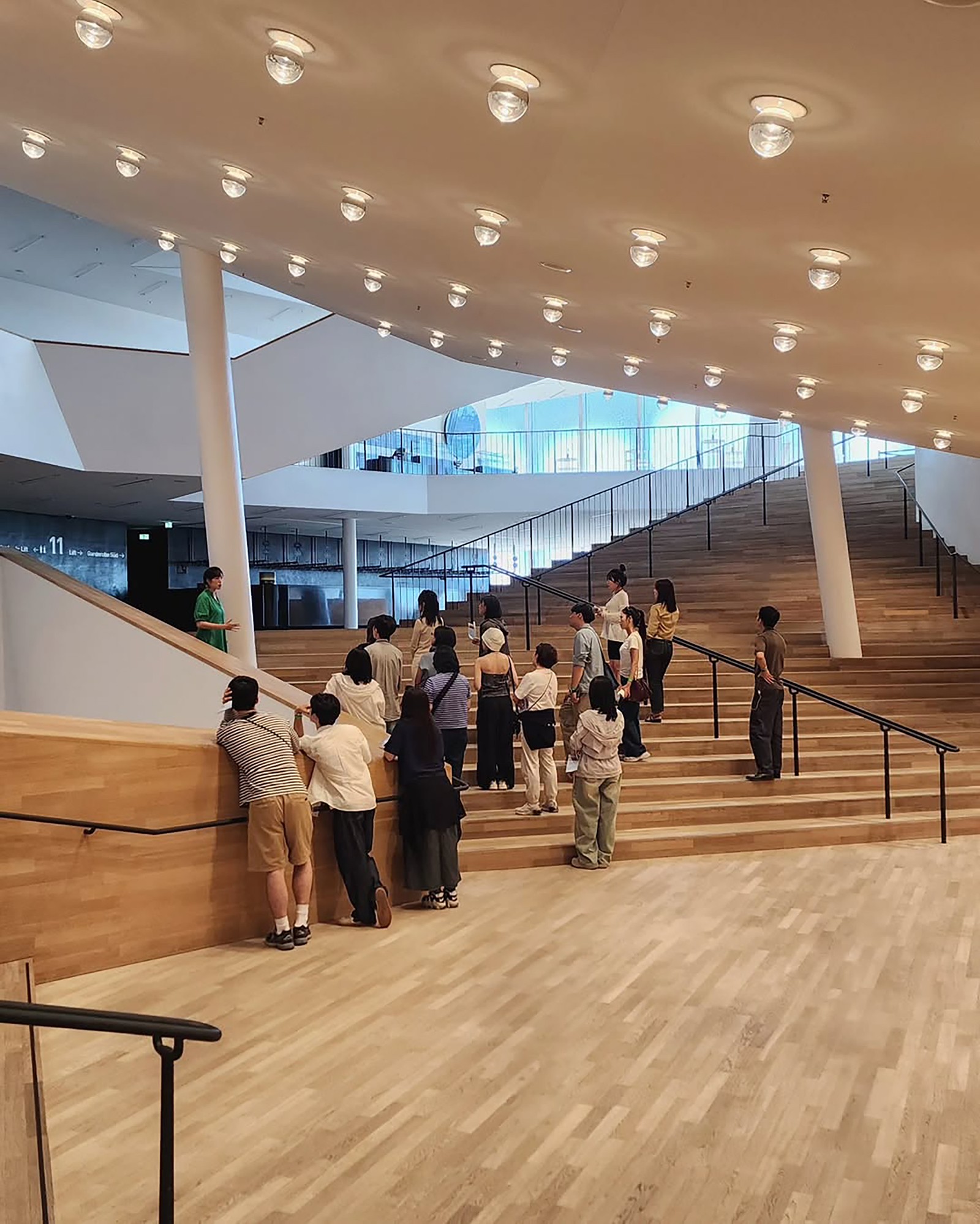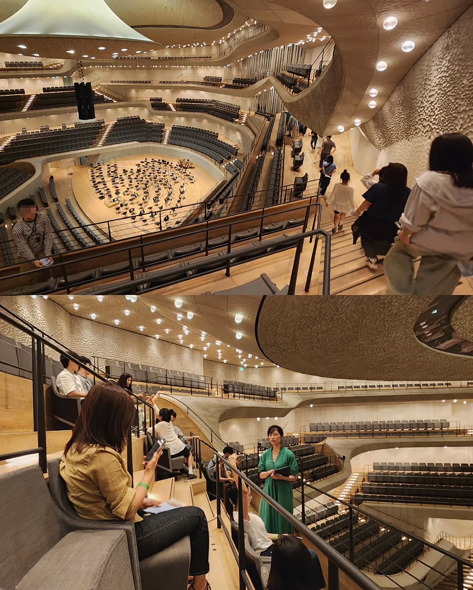 도시의 일상에서 음악의 세계로 안내하는 80미터의 에스컬레이터는, 빛의 터널 속을 따라 50m를 오르며 방문객을 위한 하나의 서곡을 연다. 에스컬레이터 끝에는 유리로 둘러싸인 플라자가 펼쳐지고, 그 너머로 항만과 도시와 하늘이 맞닿는다. 그리고 비로소 도달하는 ‘그레이트 홀(Great Hall)’은 음향 설계자 야스히사 도요타(Yasuhisa Toyota)가 조율한 10,000여 개의 석고 패널이 소리를 조율하고, 포도밭을 닮은 무대가 관객을 감싸며 공간 전체를 하나의 거대한 악기로 만든다.