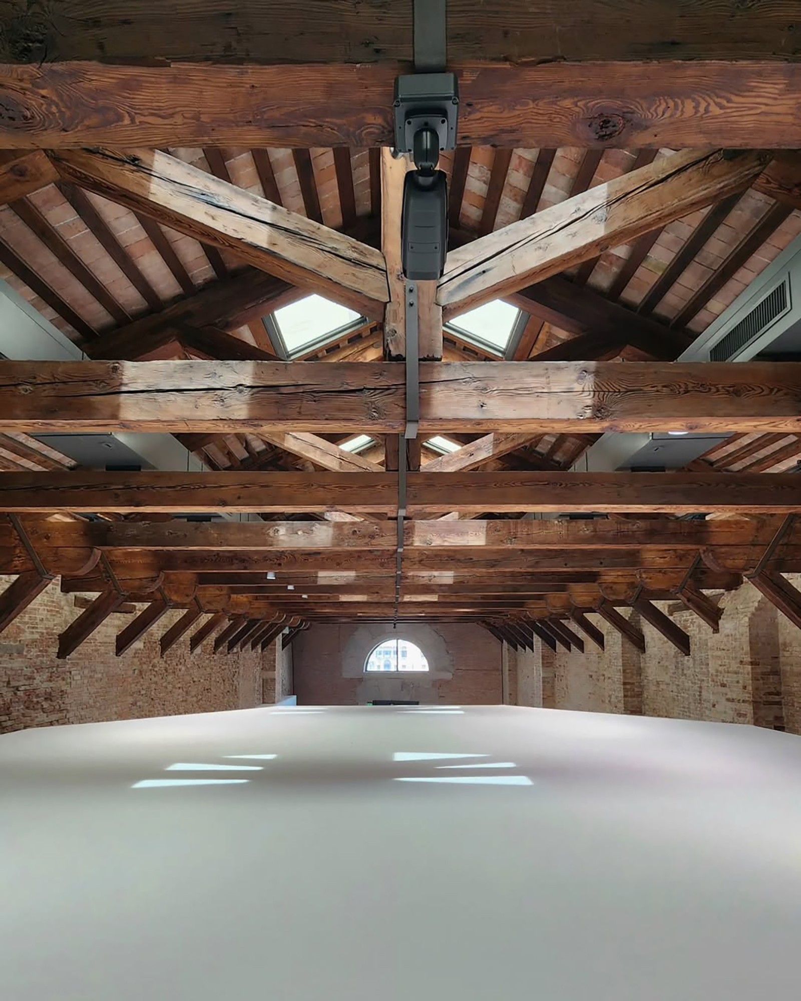 안도는 건축에 담긴 역사성을 존중하면서 내부를 비워냈다. 낡은 벽돌 외벽과 목조 지붕틀은 그대로 살리고, 그 안에 매끄러운 콘크리트 벽과 바닥을 삽입해 과거와 현재가 긴장 속에 공존하도록 했다. 거친 석조와 매끈한 콘크리트가 맞닿는 경계에서 공간은 침묵 속의 울림을 만든다.
