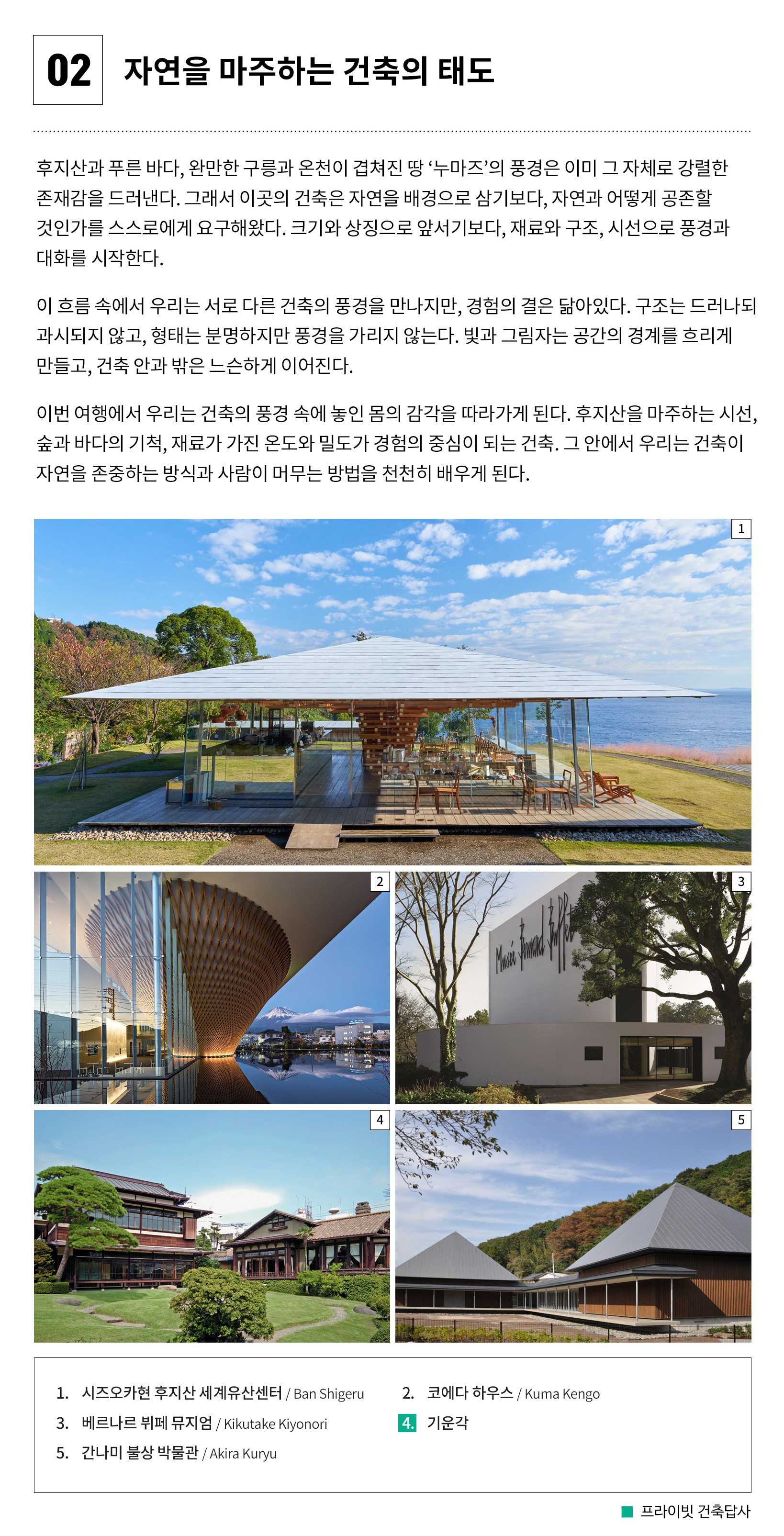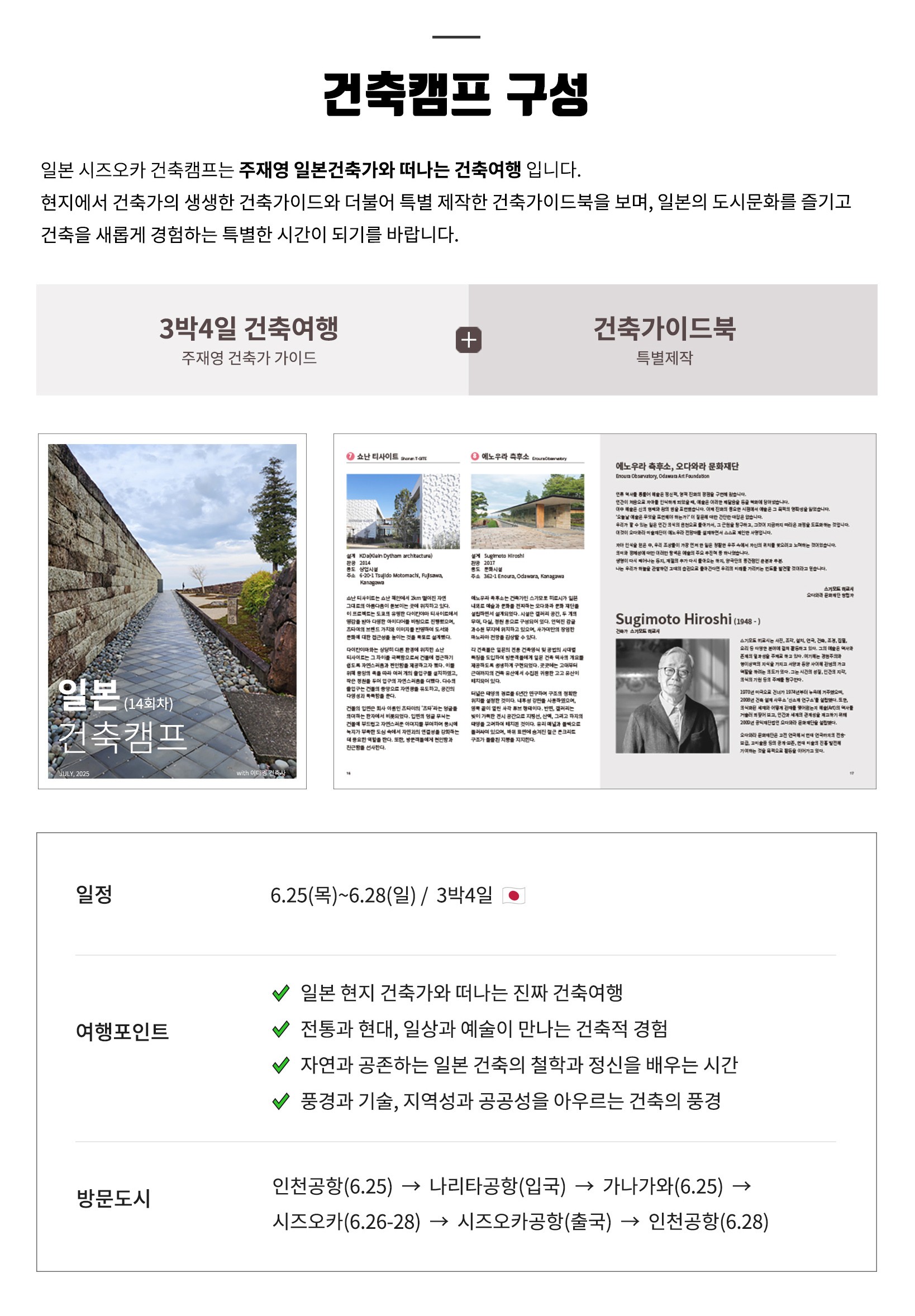· 건축가와 함께 ‘진짜’ 일본 건축여행을 떠나고 싶은 분 ⭐️ · 일본의 도시문화를 경험하고, 건축에 몰입하고 싶은 분 🗺️ · 현대 건축의 원리를 이해하고, 공간을 읽는 눈을 기르고 싶은 분🔎 · 대자연과 공존하는 건축을 직접 경험하고 싶은 분 🌿